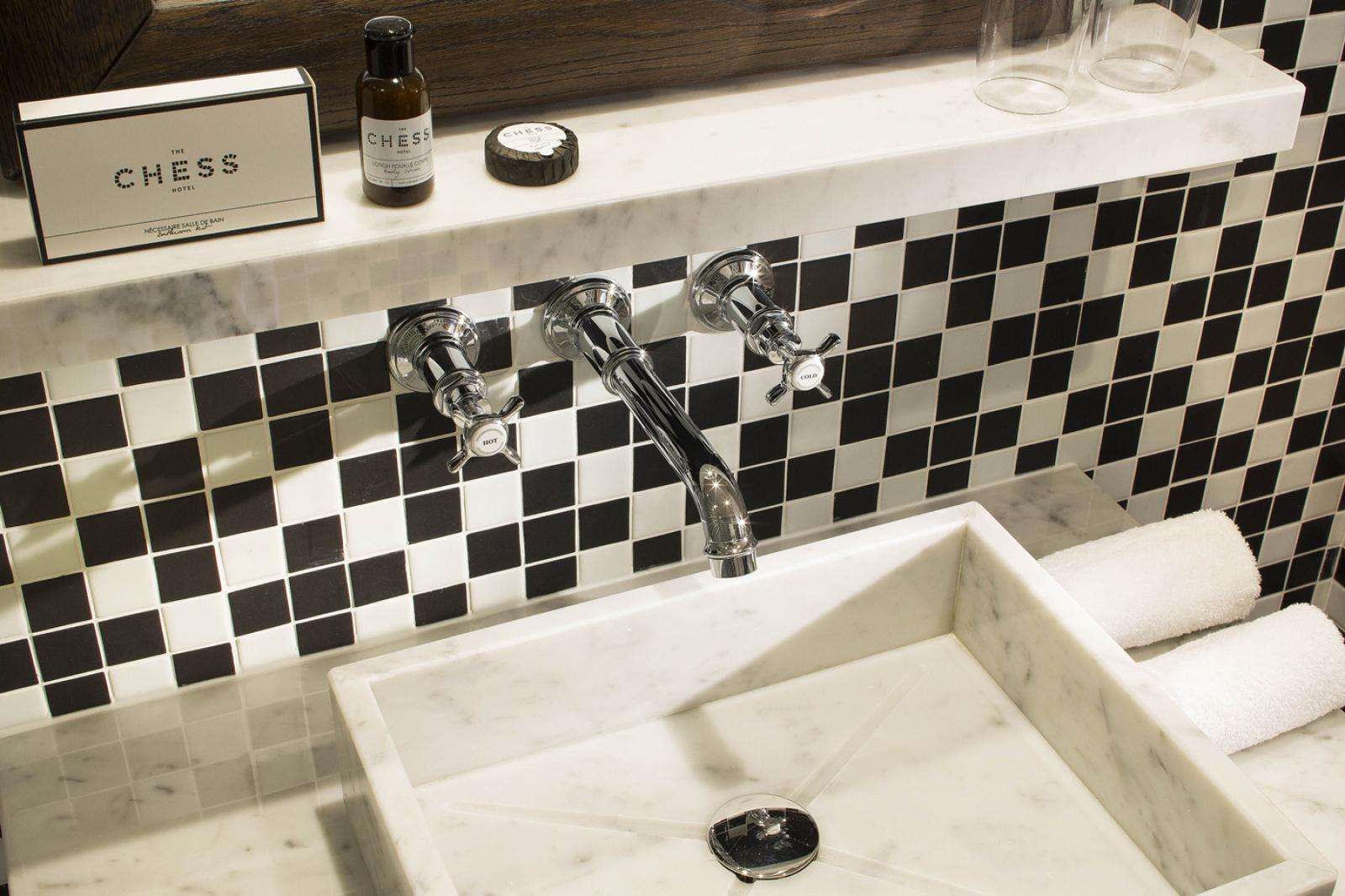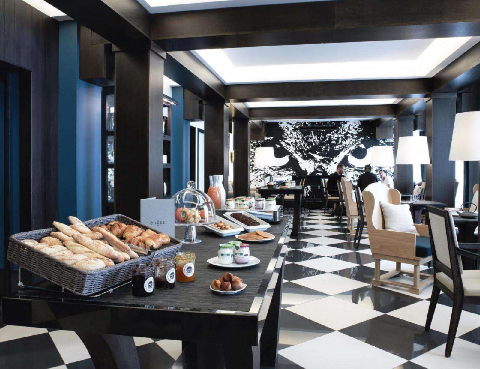 Inauguré en 2014 dans l’un des quartiers les plus prestigieux de Paris, à deux pas de l’Opéra, des Grands Magasins Printemps et Galeries Lafayette, de la Madeleine et de la Place Vendôme, The Chess Hotel Paris est un établissement 4 étoiles unique à bien des égards. D’abord, il étonne par son esthétisme et sa décoration originale, signée Gilles et Boissier,qui rend hommage aux beaux matériaux – lin, chêne, marbre de Carrare. Aucun détail n’a été laissé au hasard dans ce décor harmonieux et élégant.