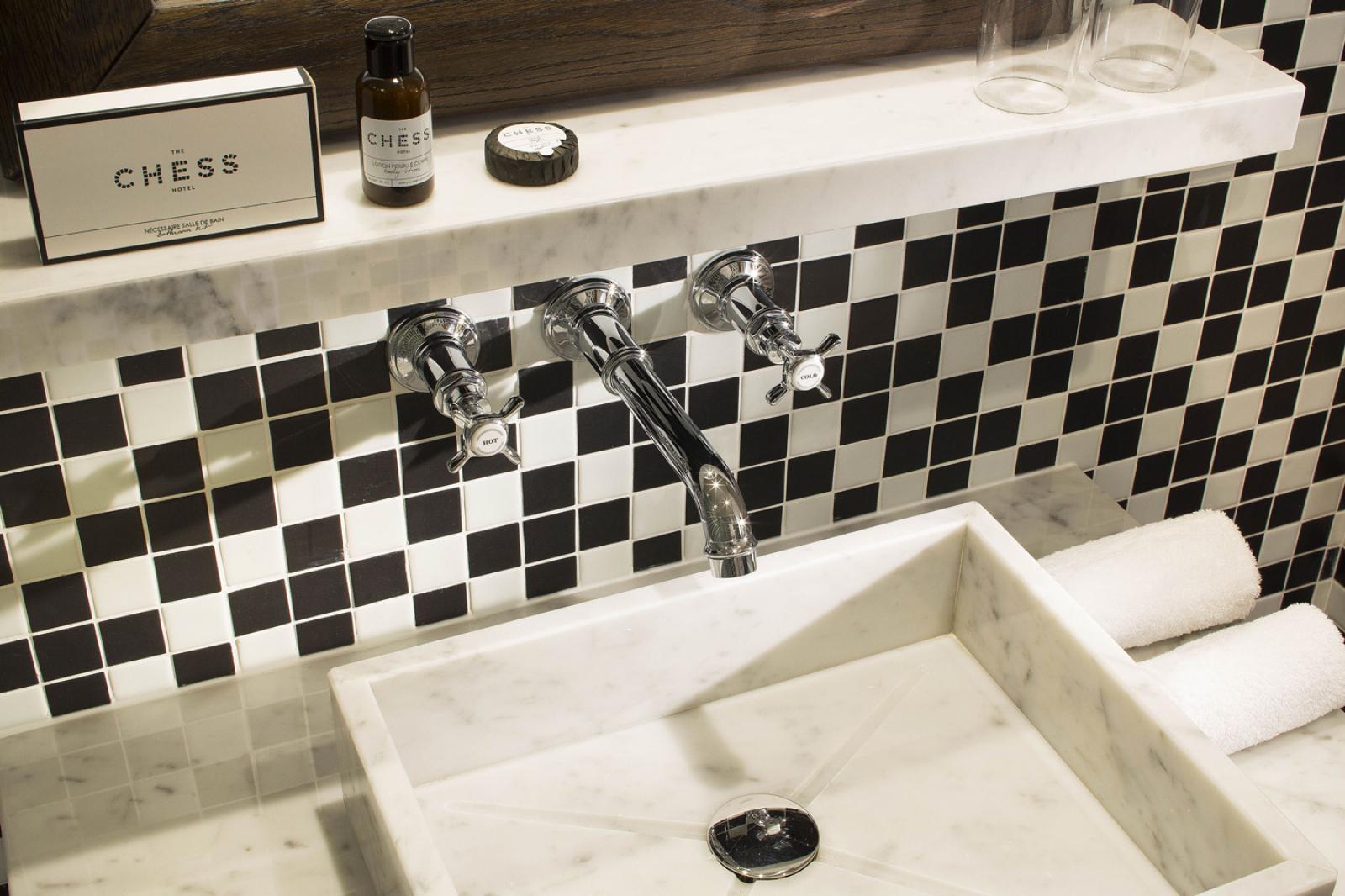 Inauguré en 2014 dans l’un des quartiers les plus prestigieux de Paris, à deux pas de l’Opéra, des Grands Magasins Printemps et Galeries Lafayette, de la Madeleine et de la Place Vendôme, The Chess Hotel Paris est un établissement 4 étoiles unique à bien des égards. D’abord, il étonne par son esthétisme et sa décoration originale, signée Gilles et Boissier,qui rend hommage aux beaux matériaux – lin, chêne, marbre de Carrare. Aucun détail n’a été laissé au hasard dans ce décor harmonieux et élégant.